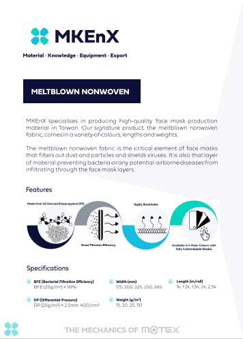 MKEnX's meltblown nonwoven fabric is the critical element of face masks that filters various particles and shields viruses. It also prevents bacteria from infiltrating through the layers.