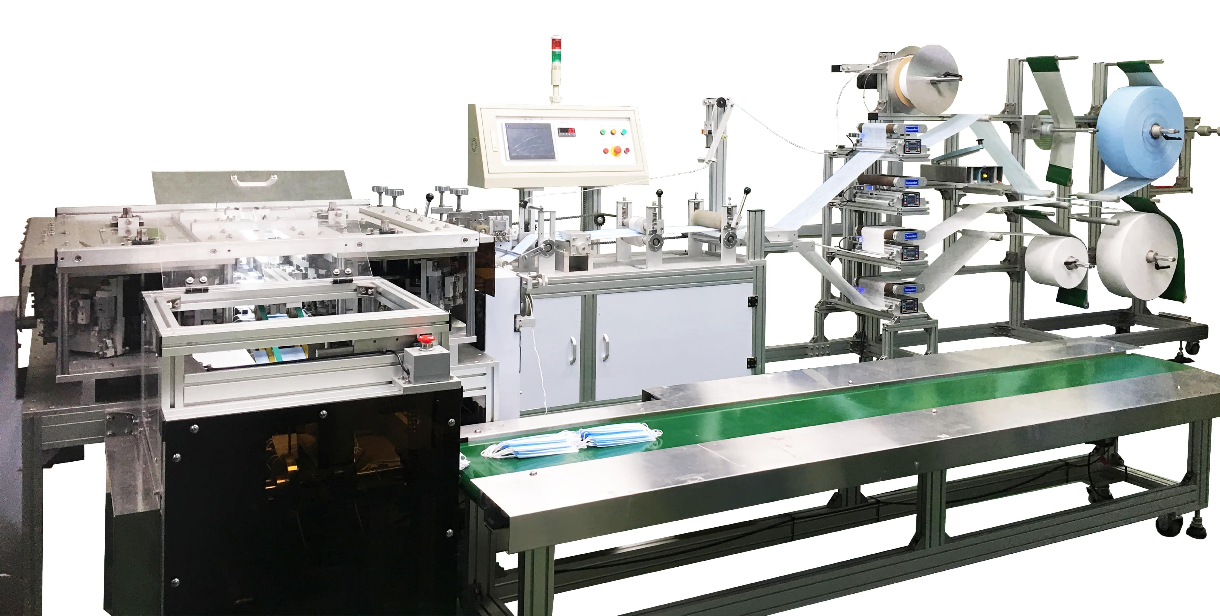 Our latest high speed flat mask machine for outward ear loop type face mask. Operates without an air compressor and producing up to 150-180 pcs/min.